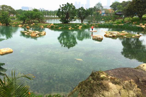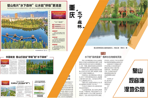 流花湖湖水清澈見底,水下植物生長良好,形成的“水下森林”發(fā)揮作用,湖水水質(zhì)煥然一新,湖水生態(tài)的提...