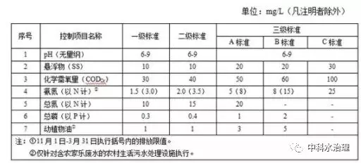 規(guī)模小于 2m3 /d(不含)的新建農(nóng)村生活污水處理設(shè)施,水污染物排放限值執(zhí)行下表中三級(jí)標(biāo)準(zhǔn)。