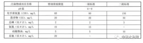 農(nóng)村生活污水處理設(shè)施水污染物排放限值分別執(zhí)行特別排放限值、一級(jí)標(biāo)準(zhǔn)、二級(jí)標(biāo)準(zhǔn):