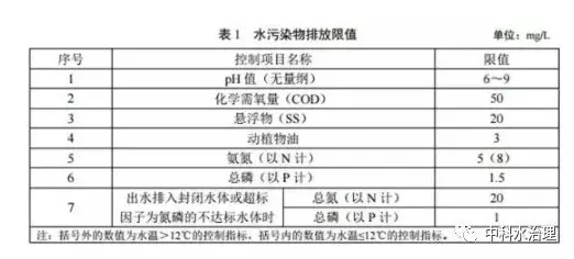 規(guī)模大于 2m3 /d(含)的新建農(nóng)村生活污水處理設(shè)施,水污染物排放限值按下表對(duì)應(yīng)的規(guī)定執(zhí)行。
