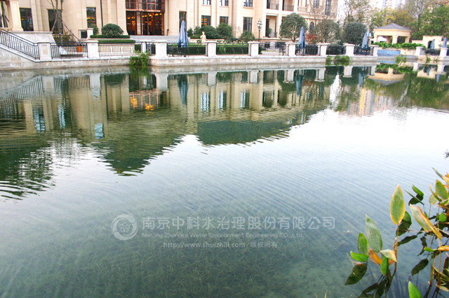 復地御香山二期景觀湖為新開挖人工湖體。業(yè)主要求通過建立健康、穩(wěn)定、經(jīng)濟的清水型生態(tài)系統(tǒng)來保護湖水水質(zhì),實現(xiàn)長效景觀性。水生態(tài)工程施工時間為2012年3月10日至5月30日??⒐ず?,復地御香山二期景觀湖水質(zhì)主要指標達到 《國家地表水環(huán)境質(zhì)量標準》GB3838-2002 Ⅱ 類標準,常年水體透明度在1.7米以上清澈見底,生態(tài)系統(tǒng)健康穩(wěn)定。