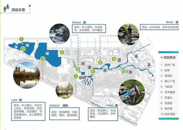 靈動水系是新川之心的三大核心元素之一,涵蓋了湖泊、濕地、潭、溪、澗等多種表現(xiàn)方式,其中西區(qū)的兩個人工湖是水系的中堅力量。